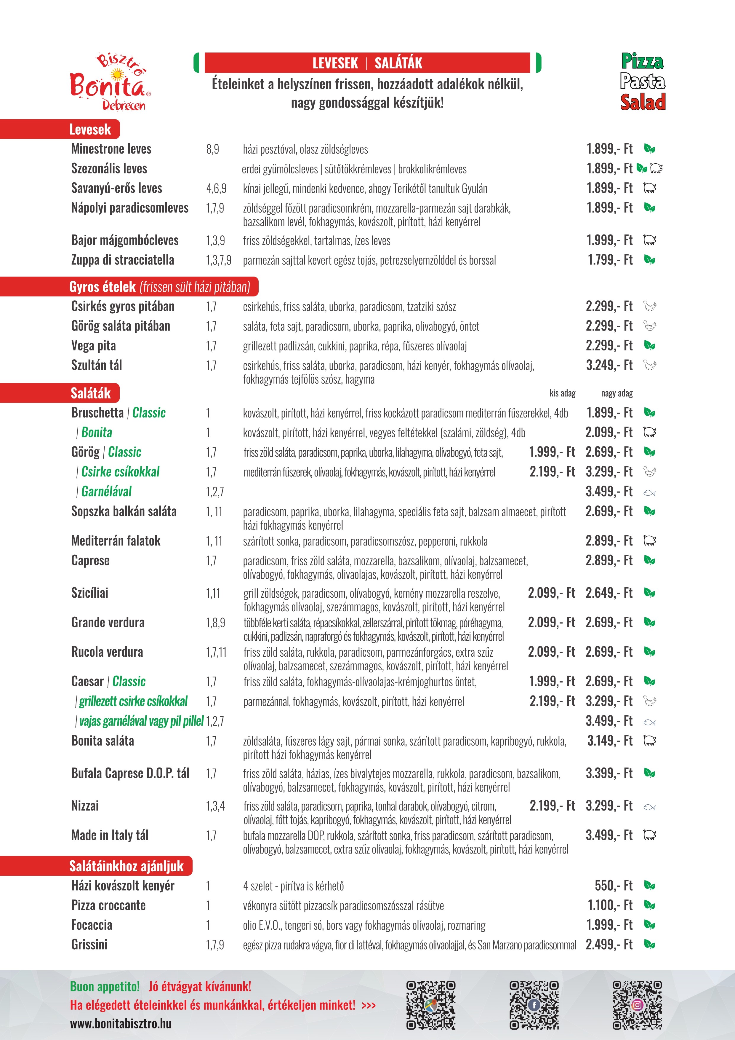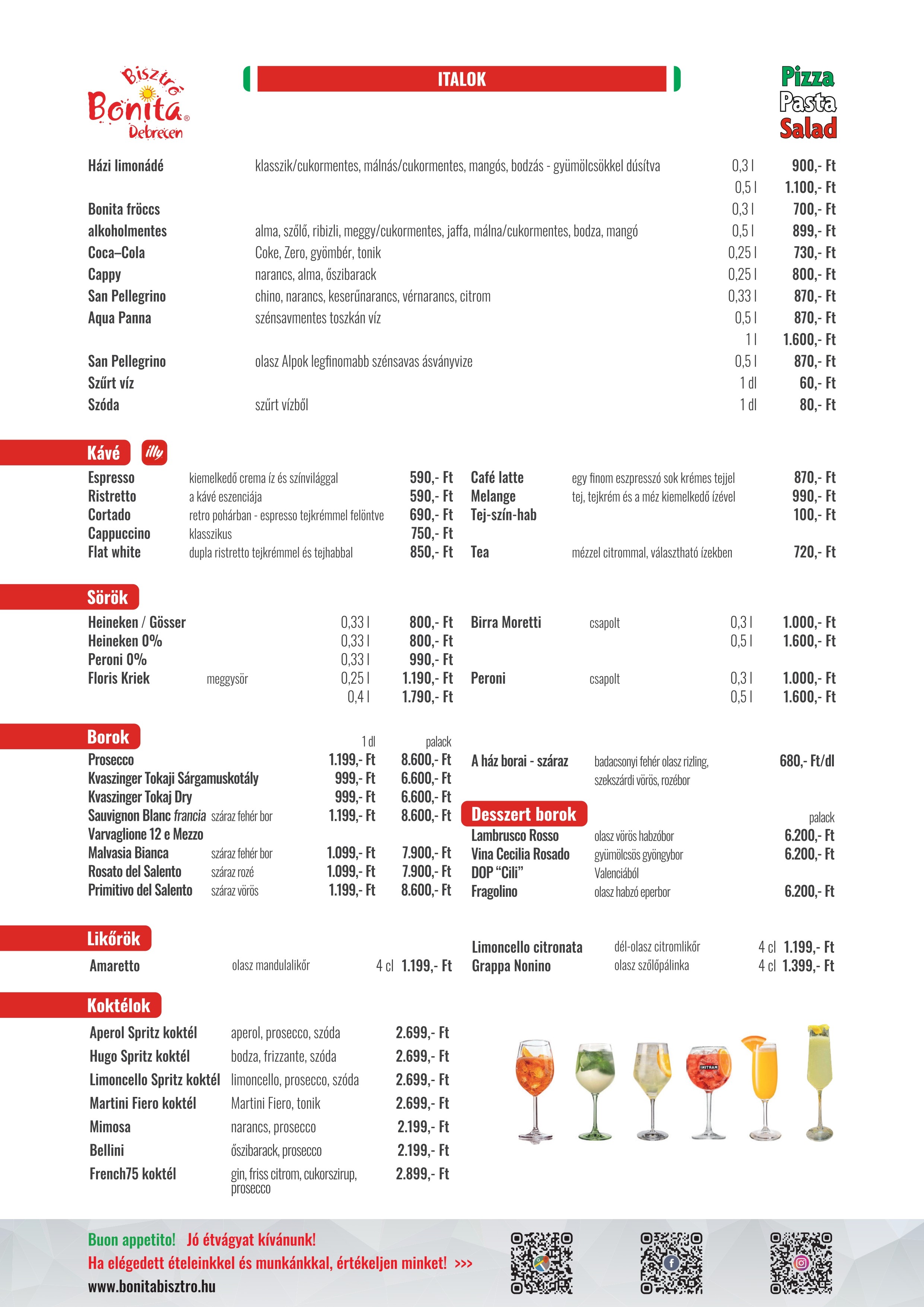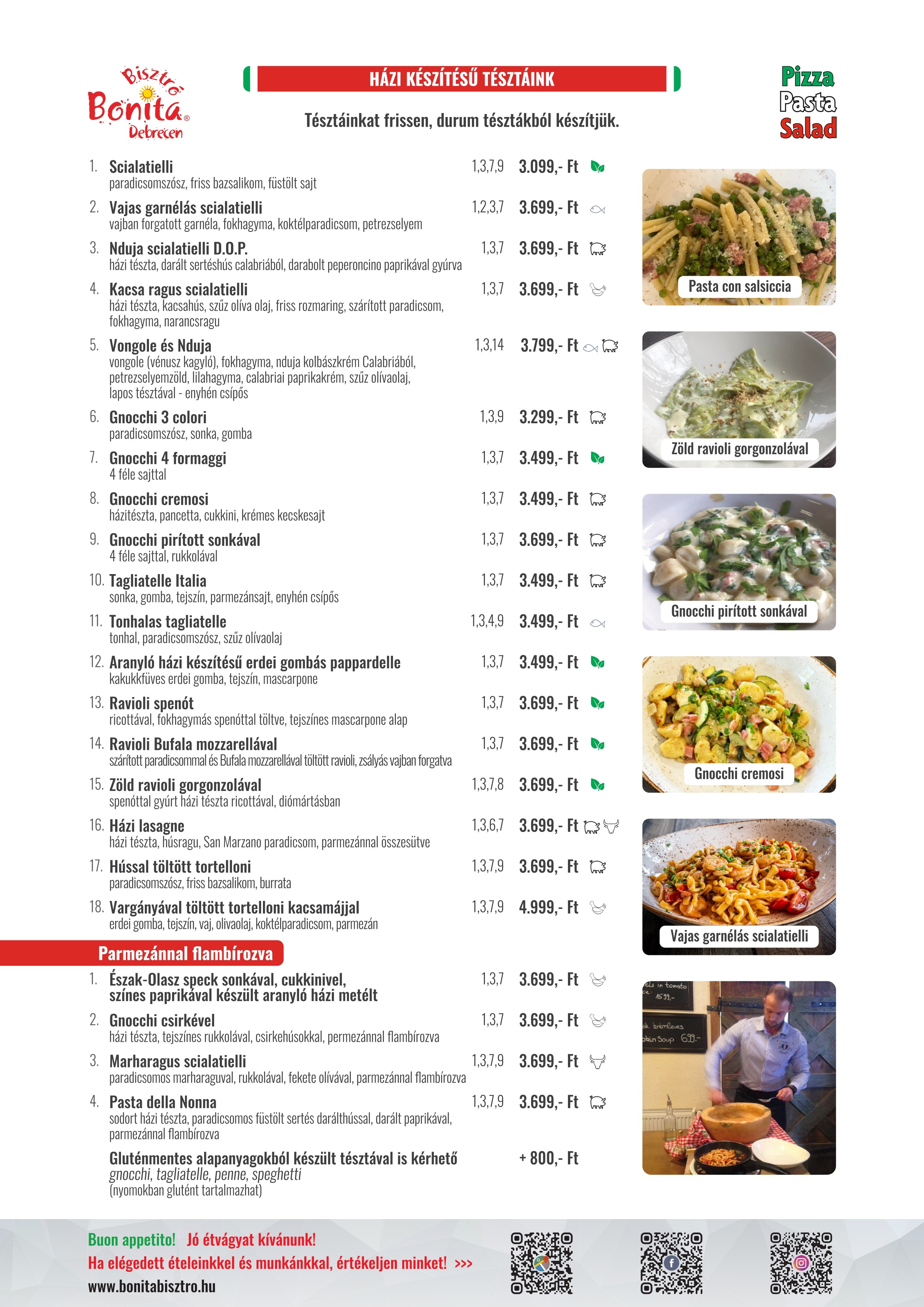 Békéscsabai éttermünk a hagyományos olasz vendéglátás minden báját magában hordozza. Friss alapanyagok, autentikus receptek és egy csipetnyi dolce vita – ez a Bonita Bisztró Békéscsaba!