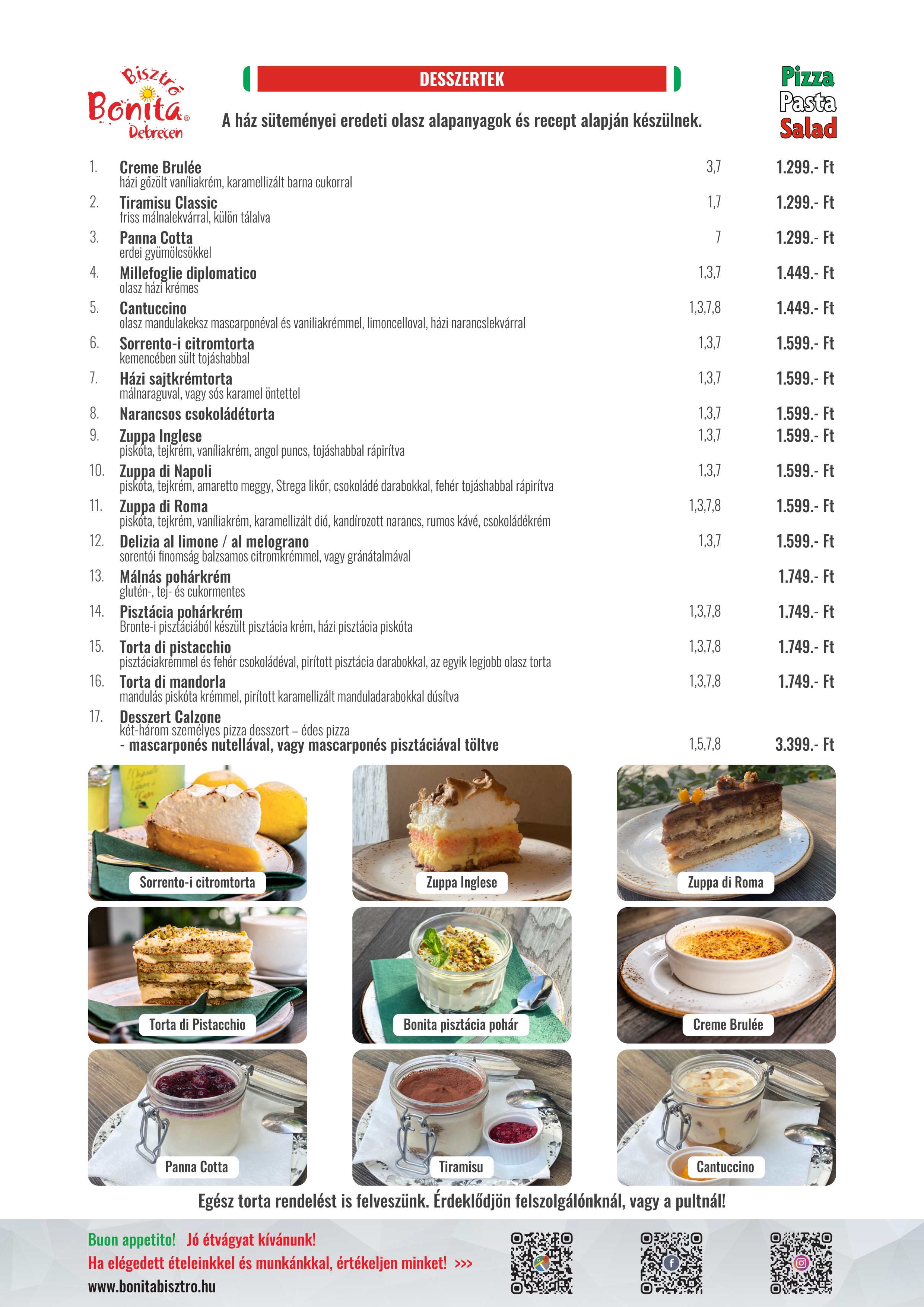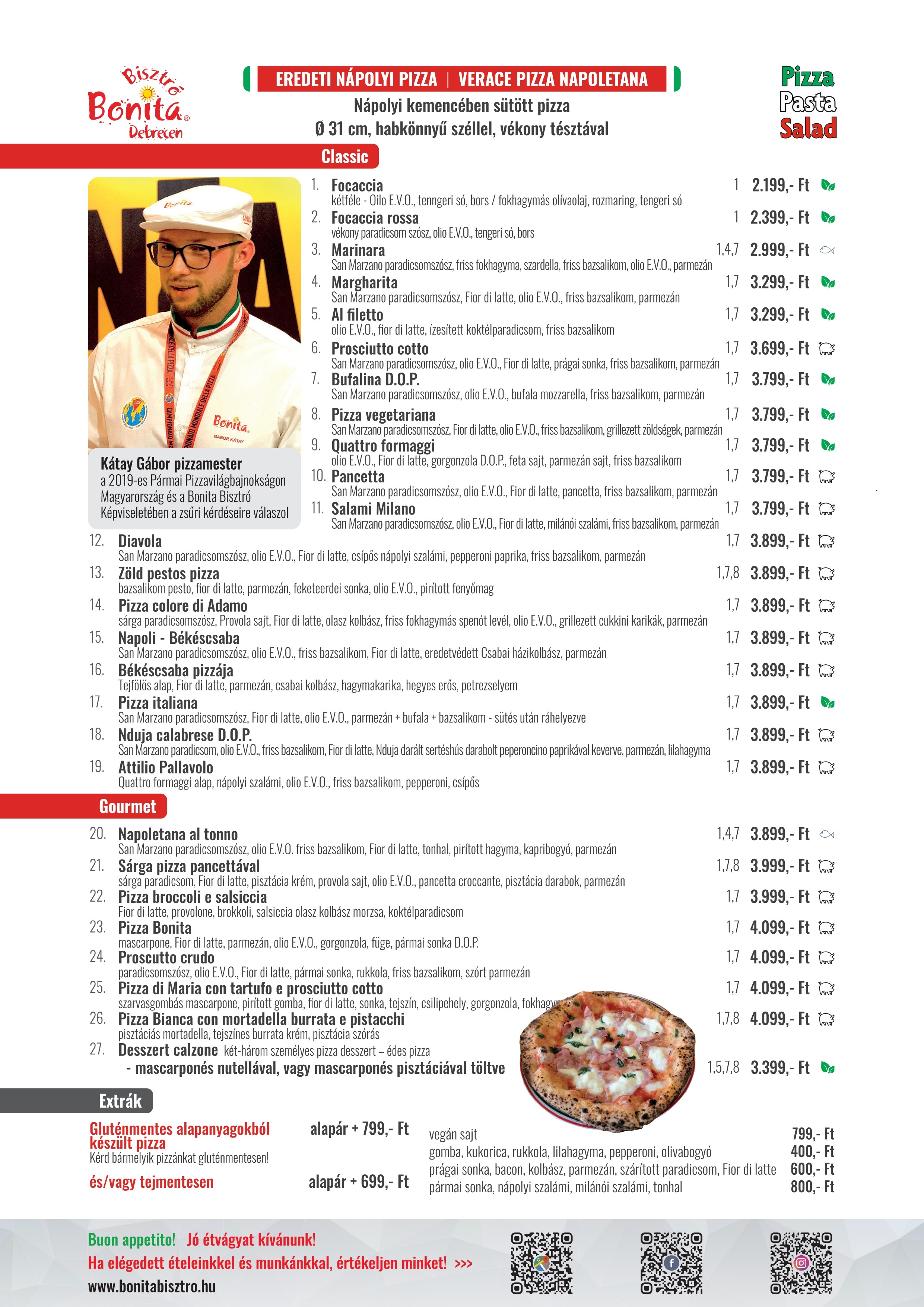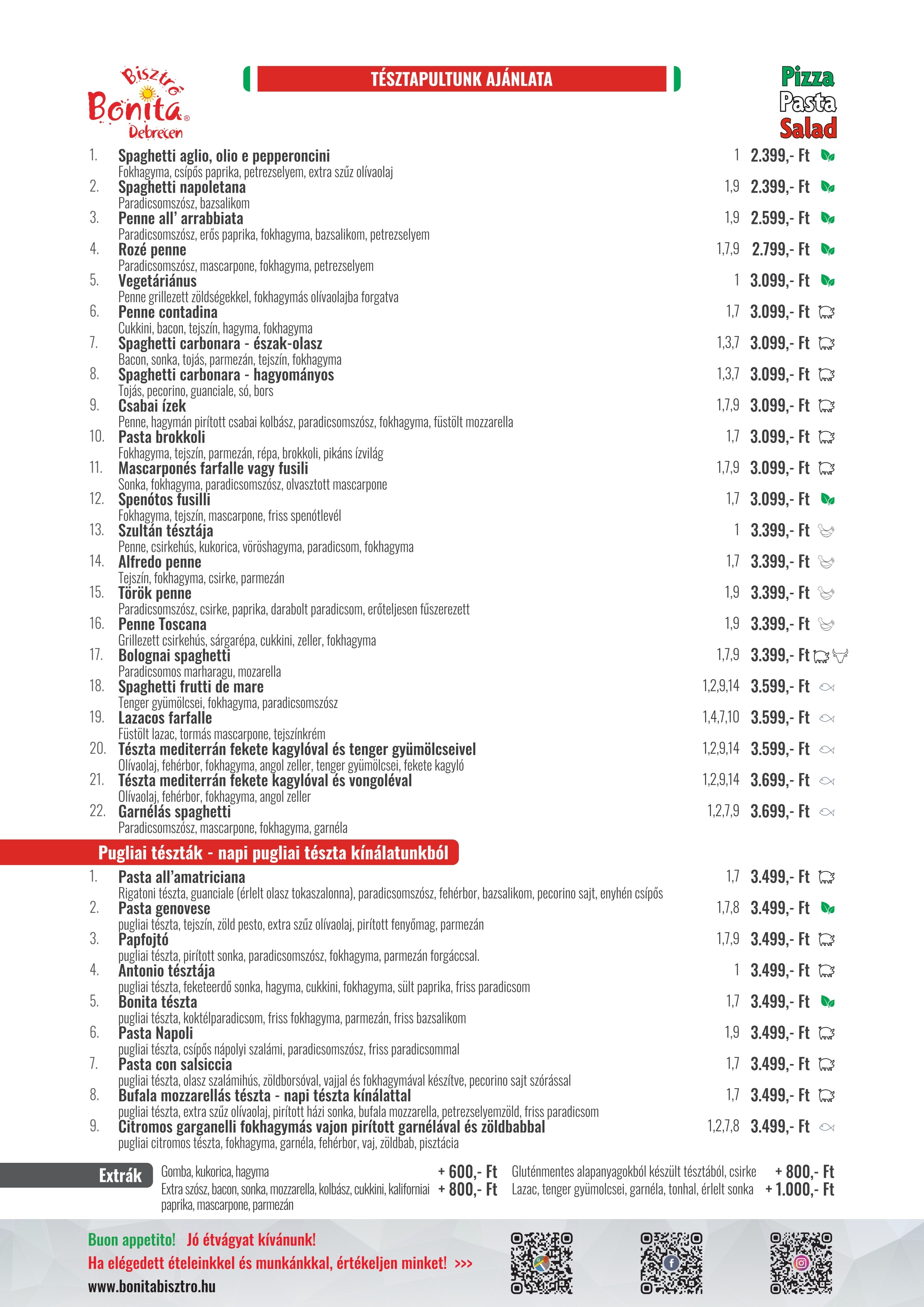 Békéscsabai éttermünk a hagyományos olasz vendéglátás minden báját magában hordozza. Friss alapanyagok, autentikus receptek és egy csipetnyi dolce vita – ez a Bonita Bisztró Békéscsaba!