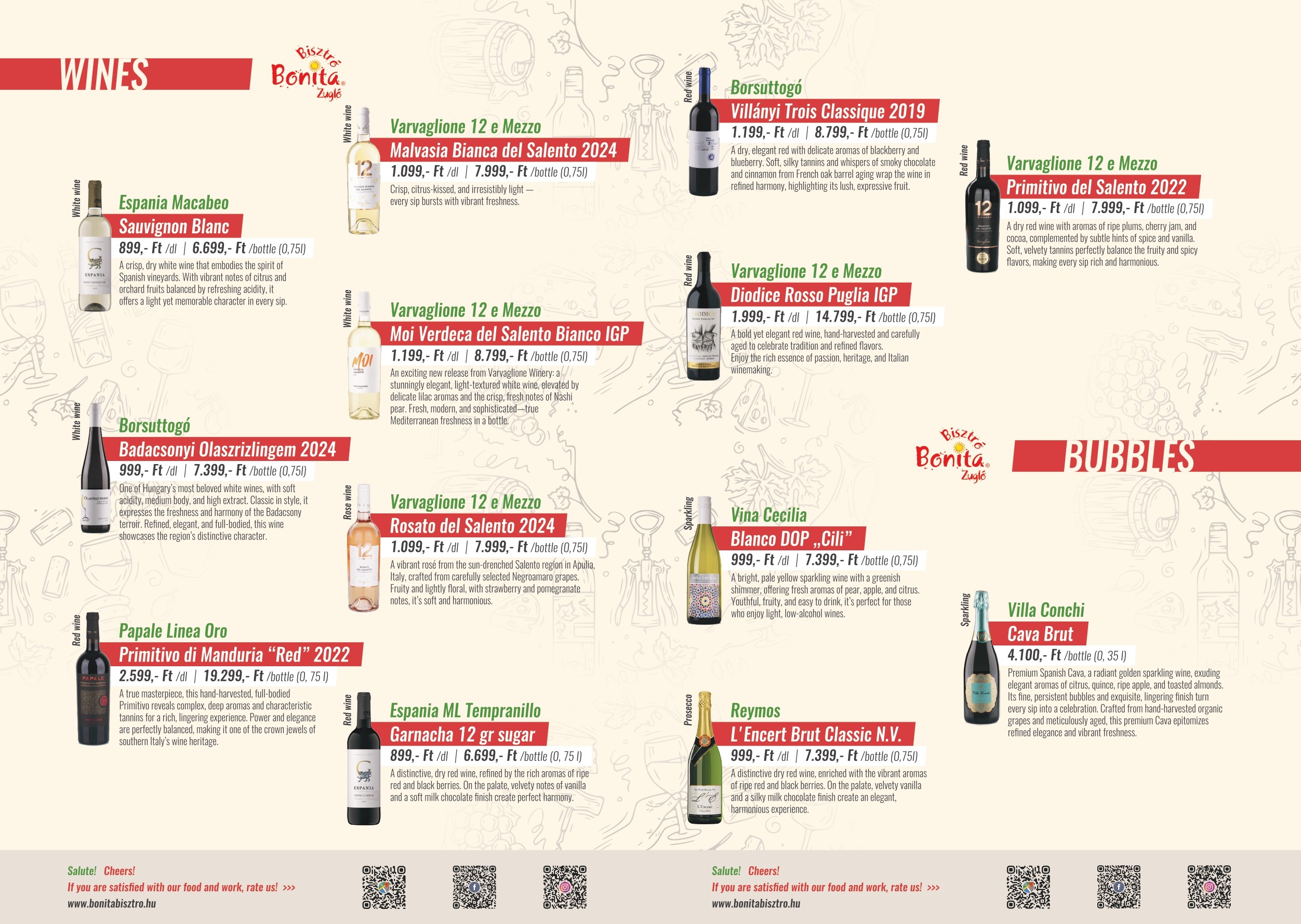 The Bonita Bistro on Szépvölgyi Street is a small slice of Italy beyond the hustle and bustle of the city. Quality ingredients, carefully crafted dishes, and a pleasant atmosphere await our guests.