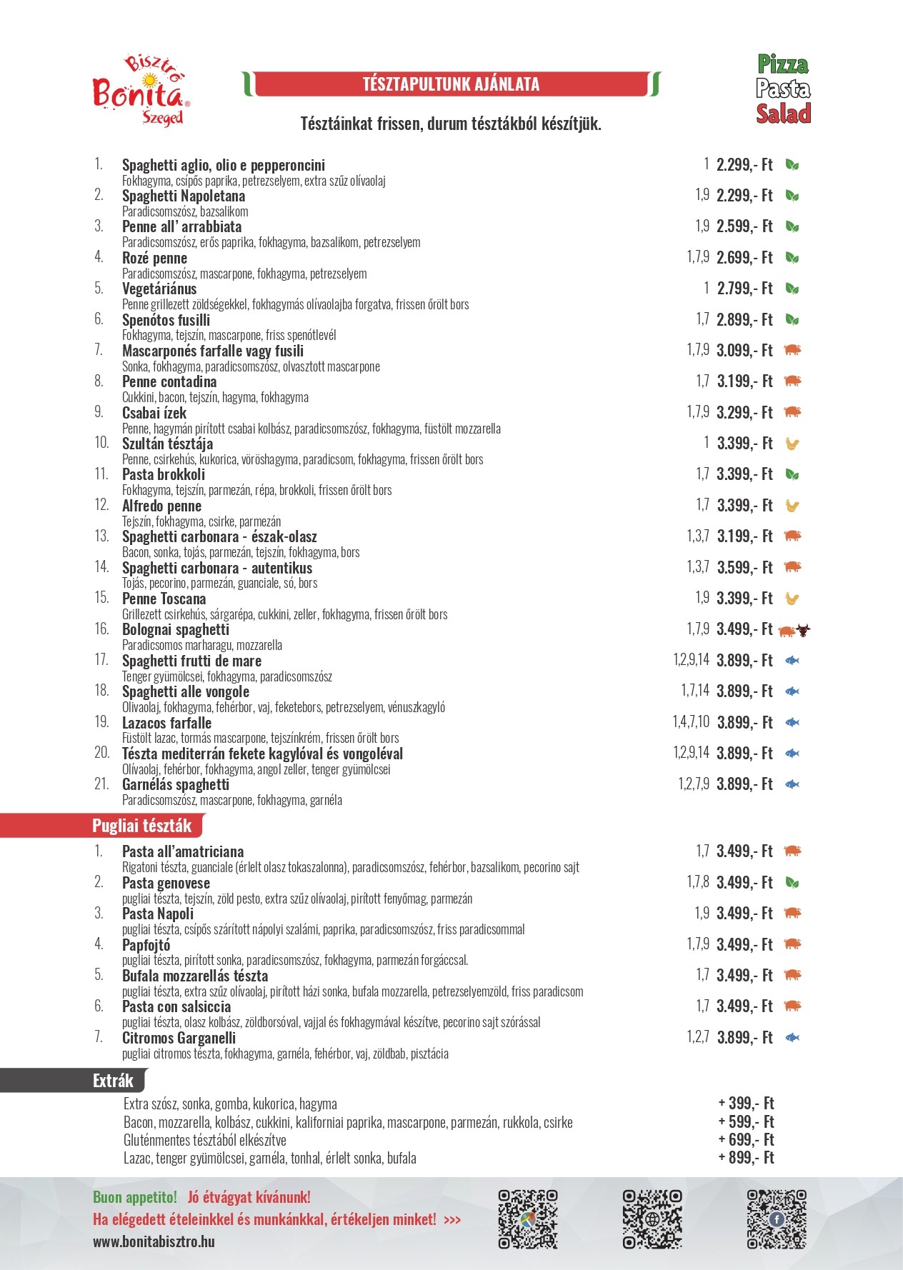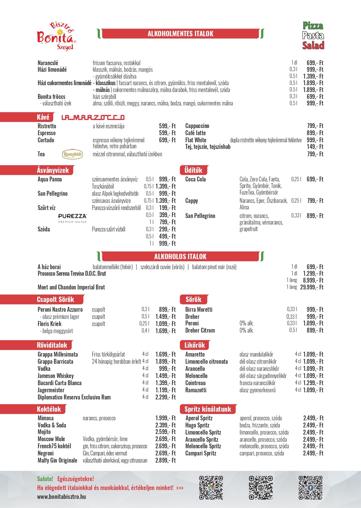 Békéscsabai éttermünk a hagyományos olasz vendéglátás minden báját magában hordozza. Friss alapanyagok, autentikus receptek és egy csipetnyi dolce vita – ez a Bonita Bisztró Békéscsaba!