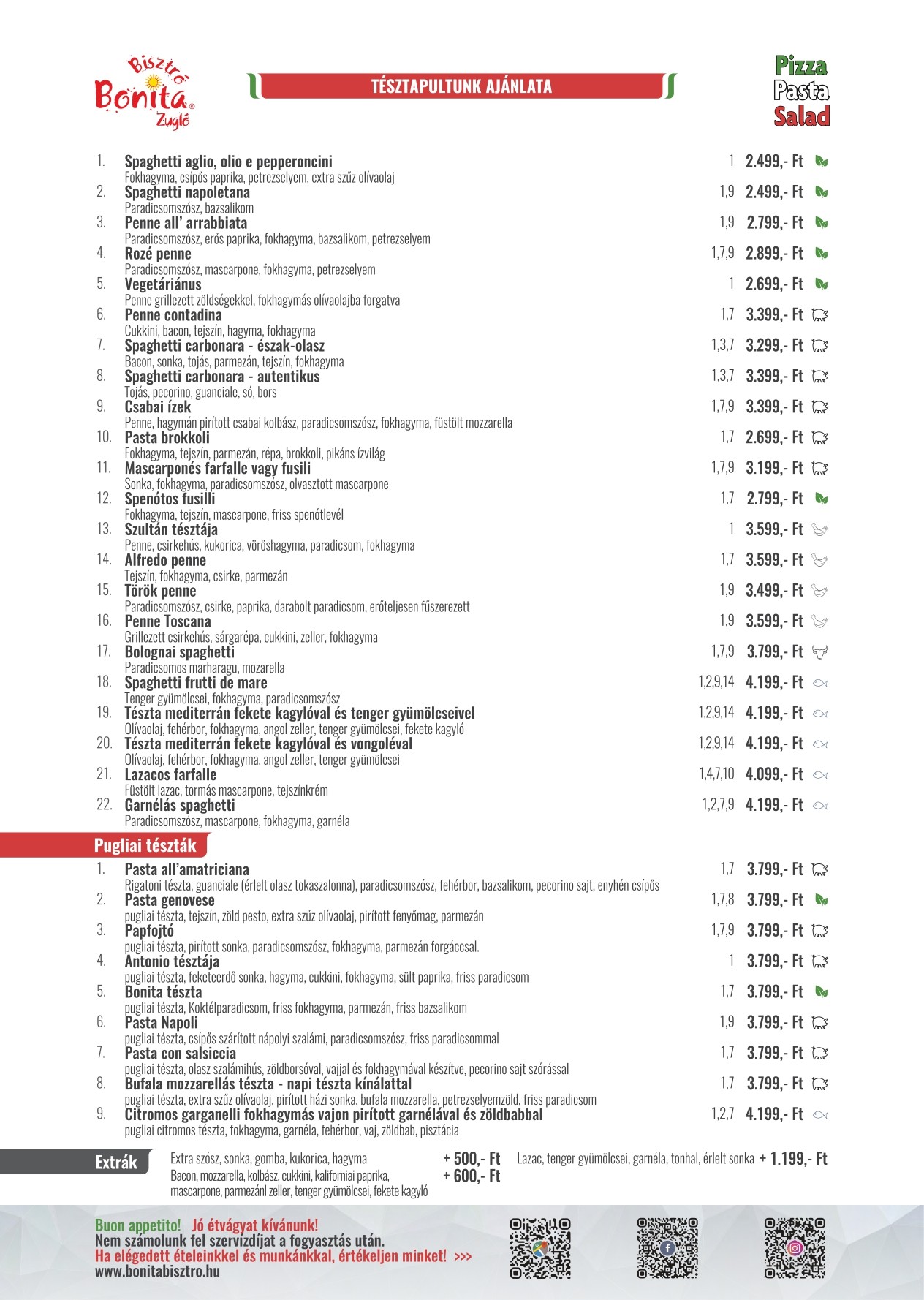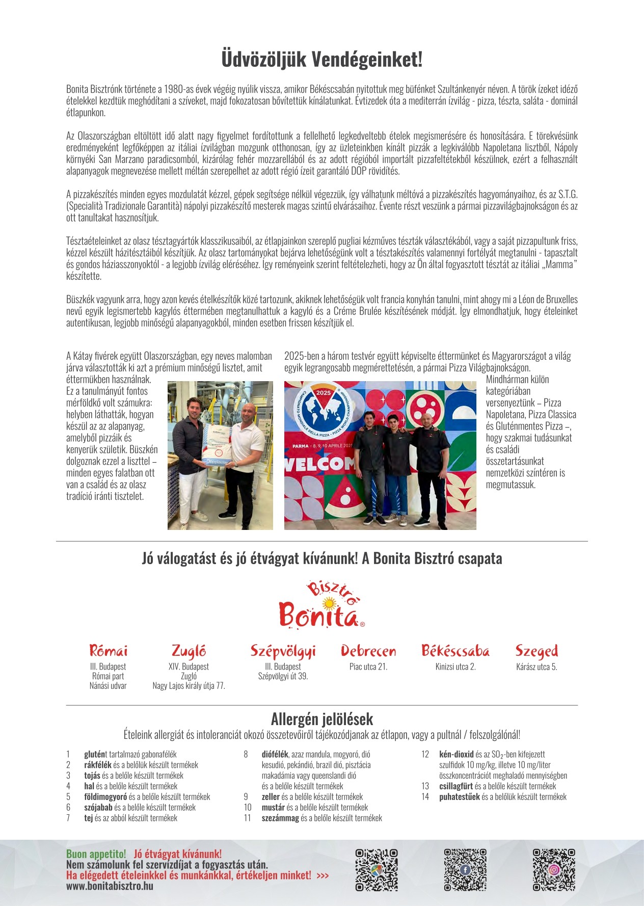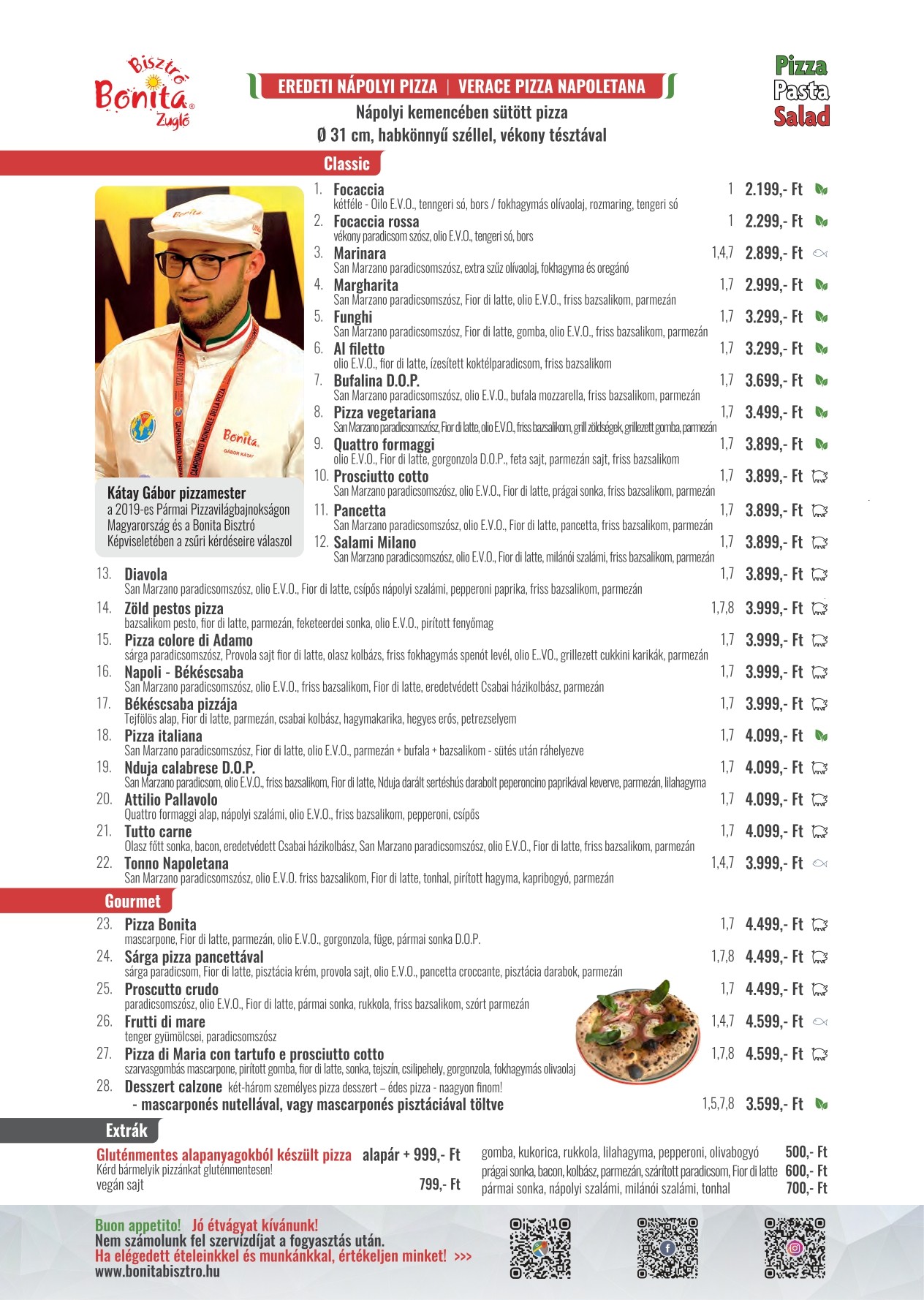 Békéscsabai éttermünk a hagyományos olasz vendéglátás minden báját magában hordozza. Friss alapanyagok, autentikus receptek és egy csipetnyi dolce vita – ez a Bonita Bisztró Békéscsaba!